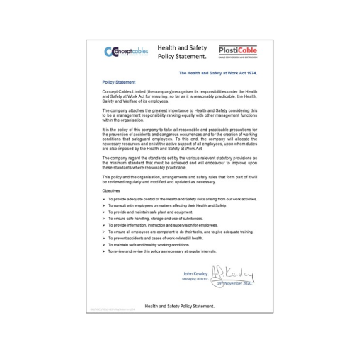 In addition to ISO 9001, Concept’s systems comply with the military requirements of AQAP 2110, reflecting our capability to support defence and other high-reliability sectors. Full traceability of all materials is maintained throughout the manufacturing process, ensuring complete visibility and control from raw material to finished product. This allows us to guarantee accountability, repeatability, and confidence in every cable we supply.