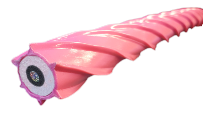 VIV is suppressed through the addition of integral trailing or helical fins (strakes) on the cable surface. These strakes disrupt the formation of Karman Vortices, stabilizing the cable and reducing vibration. Using advanced computer control, Concept Cables can precisely optimize the pitch, direction, and frequency of strakes for specific cable types and hydrodynamic conditions.